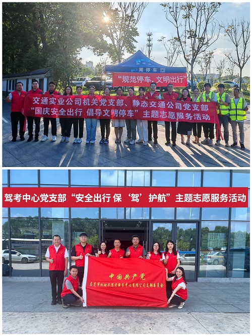 在國慶假期到來之際,為做好安全出行保障工作,進(jìn)一步發(fā)揮黨員先鋒模范作用,9月30日,交通實(shí)業(yè)公司各基層黨支部結(jié)合公司業(yè)務(wù)實(shí)際,組織約30名黨員職工開展安全出行保障志愿服務(wù)活動。公司機(jī)關(guān)支部、靜態(tài)支部組織黨員職工前往東莞中心公園周邊開展“國慶安全出行 倡導(dǎo)文明停車”主題志愿服務(wù)活動,向沿街商戶、停車場車主及來往市民科普停車政策,并在公園顯眼位置設(shè)置宣傳攤位,向市民群眾派發(fā)交通安全宣傳冊及“莞停車”宣傳單張,現(xiàn)場指引車主按泊位規(guī)范停車。駕考支部組織黨員職工在企石深巷考場開展“安全出行 保‘駕’護(hù)航”主題志愿服務(wù)活動,志愿者們在考場人流量較大的出入口為考生提供交通疏導(dǎo)服務(wù),在考試樓及考場門口為考生提供考試流程指引,并積極維持現(xiàn)場秩序,努力打造安全通暢的考試環(huán)境。