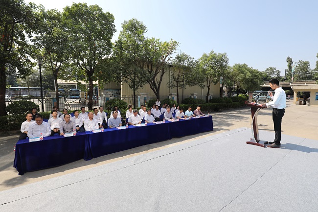 11月8日,東莞靜態(tài)交通投資有限公司揭牌儀式在交通實業(yè)公司舉行,市政府副秘書長黃淦洪,市國資委副主任王汝銘,市交通運輸局總工程師陳尚榮,市交投集團總經(jīng)理張慶文、工會主席葉卓棋、總經(jīng)理助理和交通實業(yè)公司執(zhí)行董事李斌峰等領(lǐng)導(dǎo)出席儀式。