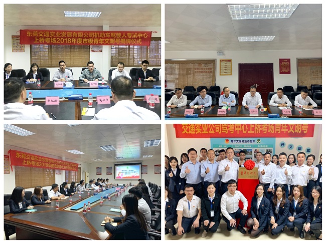 11月28日上午,交通實業(yè)公司駕考中心上橋考場“2018年度東莞市青年文明號”揭牌儀式在上橋考場舉行。東城街道團委書記袁沛霖,副書記吳伯珅,交通實業(yè)公司黨總支部副書記、總經理莫松堅,黨總支部副書記、監(jiān)事劉拓瑜,駕考中心黨支部書記、總經理李敬超,公司團支部書記、駕考中心副總經理周良,以及創(chuàng)建小組和考場相關人員參加了儀式。