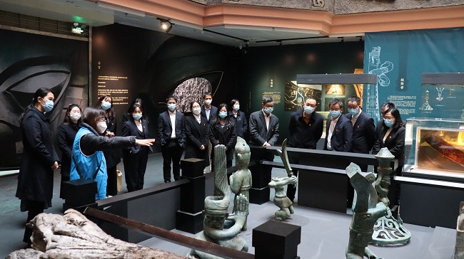 活動首先組織黨員們學習《習近平總書記在學習貫徹黨的二十大精神研討班開班式上的重要講話》、中國式現(xiàn)代化理論和實踐問題等理論要點,隨后前往東莞博物館開展現(xiàn)場教學,在講解員的帶領(lǐng)下參觀《神秘古蜀國 理解三星堆》展覽,觀摩古蜀文明,感受長江流域與黃河流域中華文明的交流與融合,并通過參觀《古代東莞》專題展的大量館藏文物和文獻史料,加深對東莞歷史文化內(nèi)涵的認識。