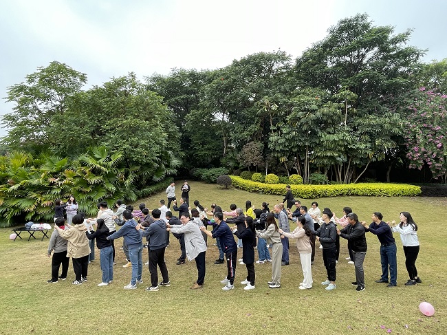到達(dá)燕嶺濕地公園后,會員們沿著蜿蜒的水系漫步閑聊,不時用鏡頭記錄美好瞬間,感受青山綠水帶來的愉悅;隨后到燕嶺園營地開展團(tuán)建活動,通過熱身操、按摩操等互動,迅速點(diǎn)燃現(xiàn)場氣氛,并開展了“請你不要到處摸摸”“蒙眼取水”“交叉接飛盤”等團(tuán)隊游戲。在游戲過程中,各組隊員相互鼓勁、配合默契,場外觀眾吶喊助威,掌聲和歡呼聲此起彼伏,現(xiàn)場洋溢著熱情和活力,有效增進(jìn)了相互之間的友誼和交流,受到了會員們的一致好評。