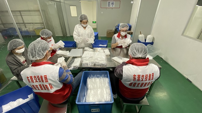 2月20日,在東莞交投集團(tuán)戰(zhàn)役支援服務(wù)隊(duì)第一批志愿者順利完成9天支援服務(wù)的第二天,由20名青年志愿者組成的第二批戰(zhàn)疫志愿服務(wù)隊(duì)到崗接棒,繼續(xù)助力東莞久林吉良凈化用品有限公司口罩生產(chǎn)。