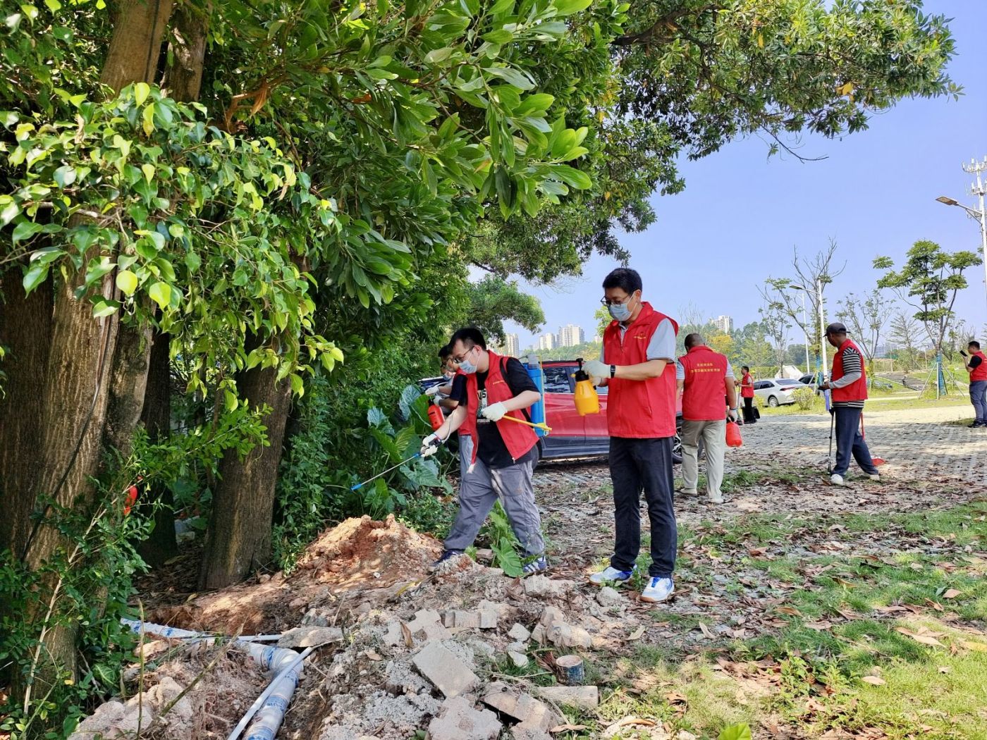 公司機(jī)關(guān)支部組織黨員職工在交通實業(yè)公司辦公大樓、寮步橫坑便民停車場開展蚊媒傳染病防控志愿服務(wù)活動,現(xiàn)場重點聚焦房前屋后、草叢、下水道溝渠等高風(fēng)險區(qū)域,對清理區(qū)域進(jìn)行全方位藥物噴灑,全面消滅易孳生蚊蟲的衛(wèi)生死角,并通過在辦公區(qū)域、飯?zhí)?、停車場出入口張貼海報等方式,向市民及員工普及蚊媒傳染病知識,以實際行動筑牢聯(lián)防聯(lián)控的嚴(yán)密防線。