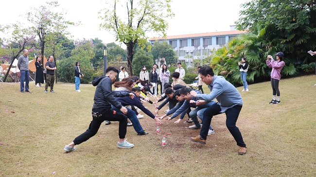 到達(dá)燕嶺濕地公園后,會(huì)員們沿著蜿蜒的水系漫步閑聊,不時(shí)用鏡頭記錄美好瞬間,感受青山綠水帶來的愉悅;隨后到燕嶺園營地開展團(tuán)建活動(dòng),通過熱身操、按摩操等互動(dòng),迅速點(diǎn)燃現(xiàn)場氣氛,并開展了“請(qǐng)你不要到處摸摸”“蒙眼取水”“交叉接飛盤”等團(tuán)隊(duì)游戲。在游戲過程中,各組隊(duì)員相互鼓勁、配合默契,場外觀眾吶喊助威,掌聲和歡呼聲此起彼伏,現(xiàn)場洋溢著熱情和活力,有效增進(jìn)了相互之間的友誼和交流,受到了會(huì)員們的一致好評(píng)。