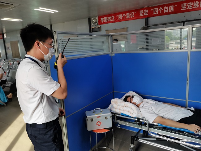 為切實(shí)做好考場(chǎng)安全事故防范,提高考場(chǎng)應(yīng)急處置能力,8月11日下午,水濂考場(chǎng)組織工作人員開展高溫中暑應(yīng)急演練。演練模擬考生候考時(shí)出現(xiàn)高溫中暑的情況,重點(diǎn)圍繞應(yīng)急預(yù)案啟用、醫(yī)療救護(hù)、人員安置等環(huán)節(jié)進(jìn)行了全面演練,檢驗(yàn)和提高了考場(chǎng)安全管控、現(xiàn)場(chǎng)應(yīng)急處置、員工協(xié)同作戰(zhàn)的能力,鍛煉了應(yīng)急隊(duì)伍,積累了實(shí)戰(zhàn)經(jīng)驗(yàn)。