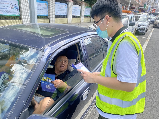 大嶺山鎮(zhèn)廣場(chǎng)大街、凱東街、玉蘭街、德政街、振華路、教育路以及中興路等7個(gè)路段共計(jì)853個(gè)泊位將于8月21日上線運(yùn)營。8月20日上午,為提前做好項(xiàng)目上線運(yùn)營宣傳,引導(dǎo)市民樹立停車?yán)U費(fèi)意識(shí),靜態(tài)交通公司組織員工開展智慧停車業(yè)務(wù)宣傳活動(dòng)。